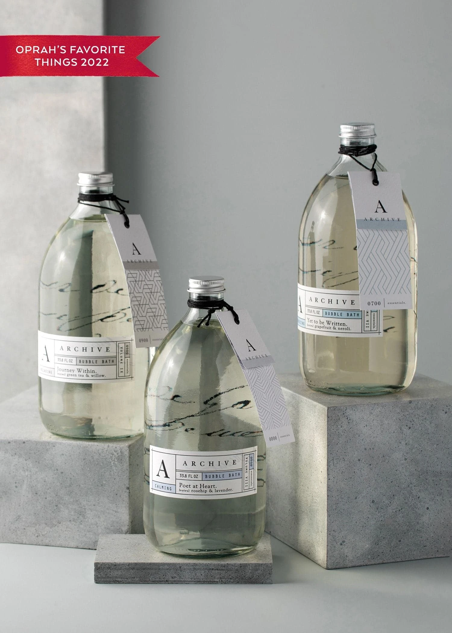 Embark on an extraordinary escape with the Archive Bubble Bath Trio. Pour yourself some luxury. Envelop your senses as you immerse yourself in a transformative blend of natural oils infused with refined fragrances to uplift, relax or awaken body & mind, leaving skin comforted for smooth sailing wherever the breeze takes you.