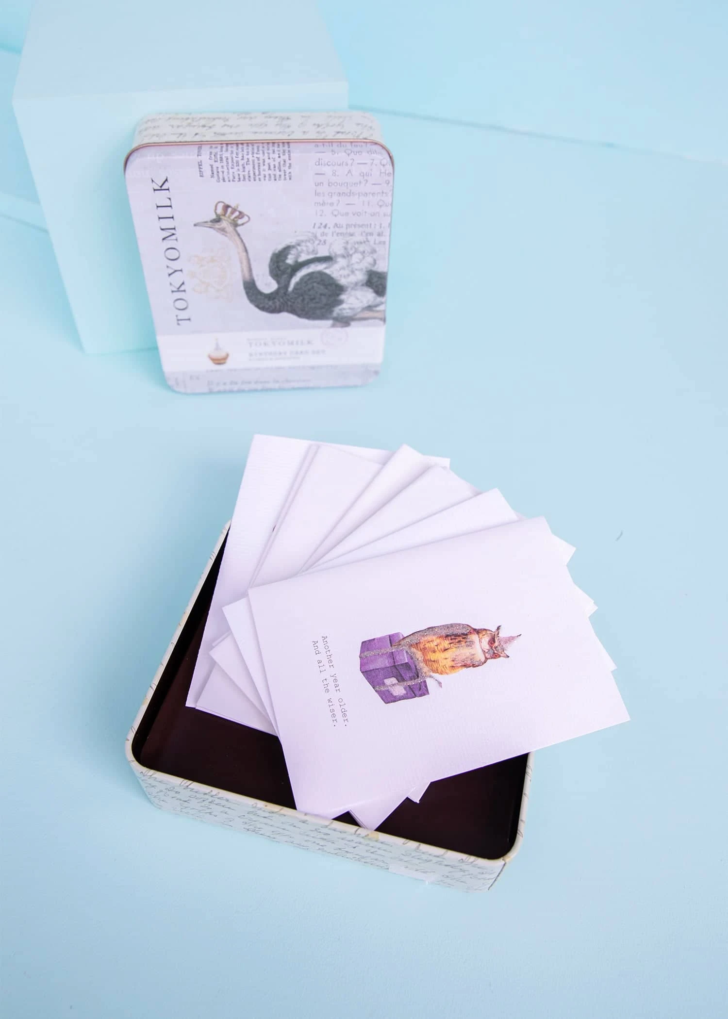 Greeting card sets in gorgeous keepsake tins featuring themed groups of eight cards & envelopes. Fabulously luxe volumes for just the occasion. Each sentiment on laid paper frosted with hand-glittered accents. Cards are blank inside.