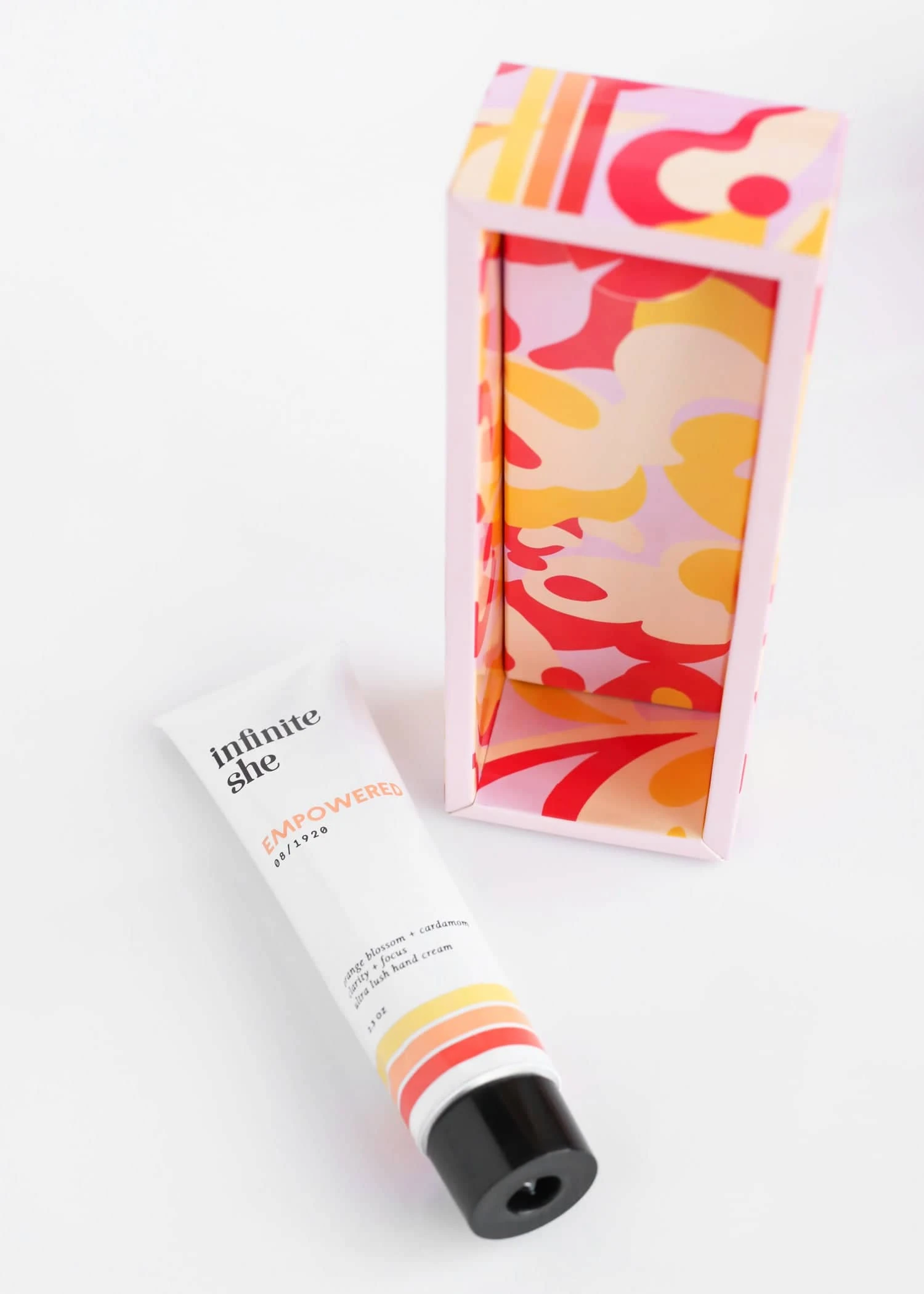 Treat your skin to the lush, smoothing power of Shea + Mango Butters designed to deeply hydrate and nourish hands ready to tackle anything. Sublimely-scented with botanicals of Orange Blossom + Cardamom, inspiring stand up, speak out momentum – this is your call to crush it. Yours aren’t just any hands – they nurture beauty, break down doors, and mold the future. Show ‘em some love!