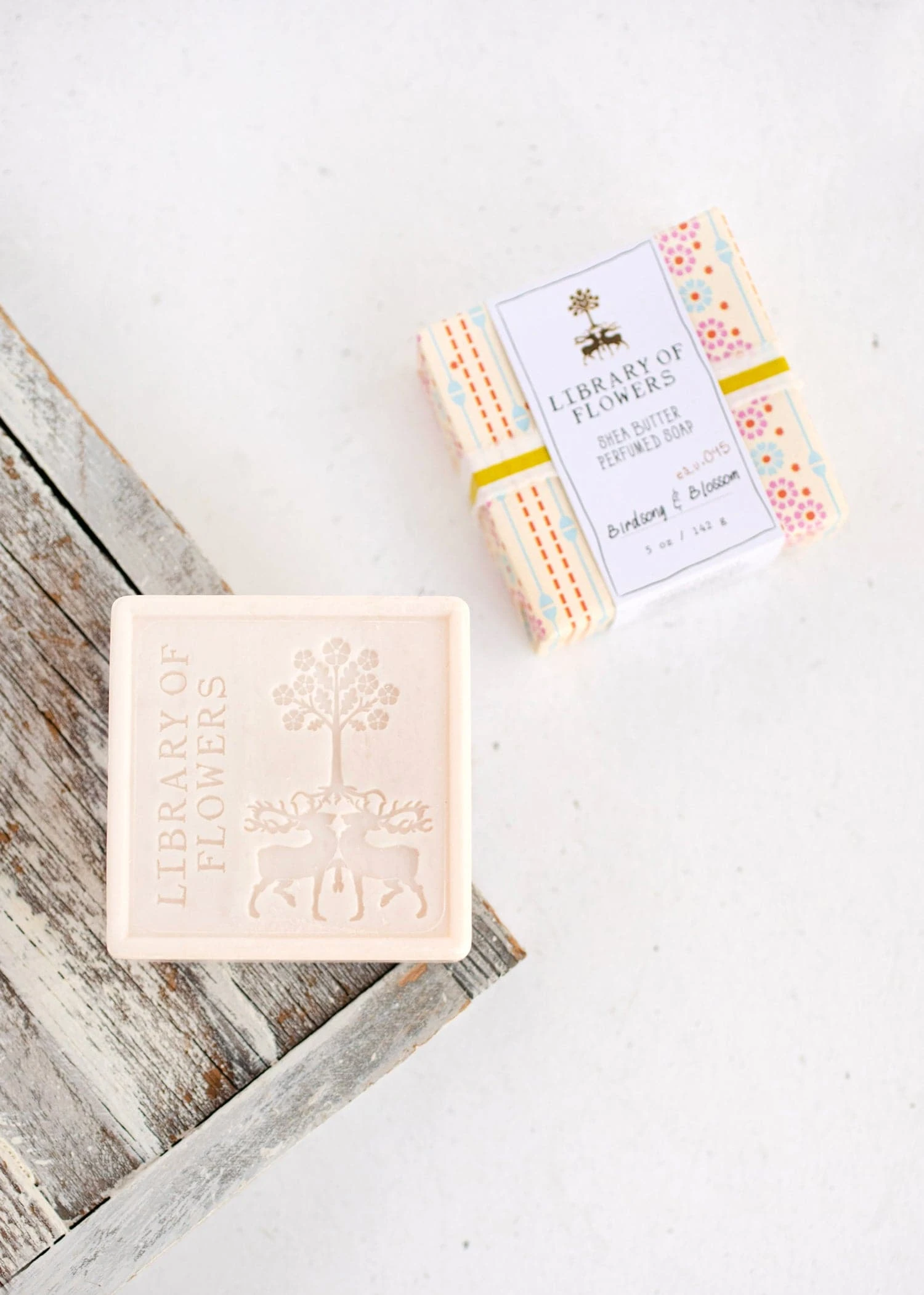 Each soap is debossed with the signature Library of Flowers crest, then artfully wrapped in one of 10 vibrant and playful botanical patterns. A citron-striped ribbon ties it all together, while a touch of copper foil adds an eye-catching shine. - Fragrance NotesHarmonious blend of invigorating bergamot, comforting sandalwood, and energizing orange blossom