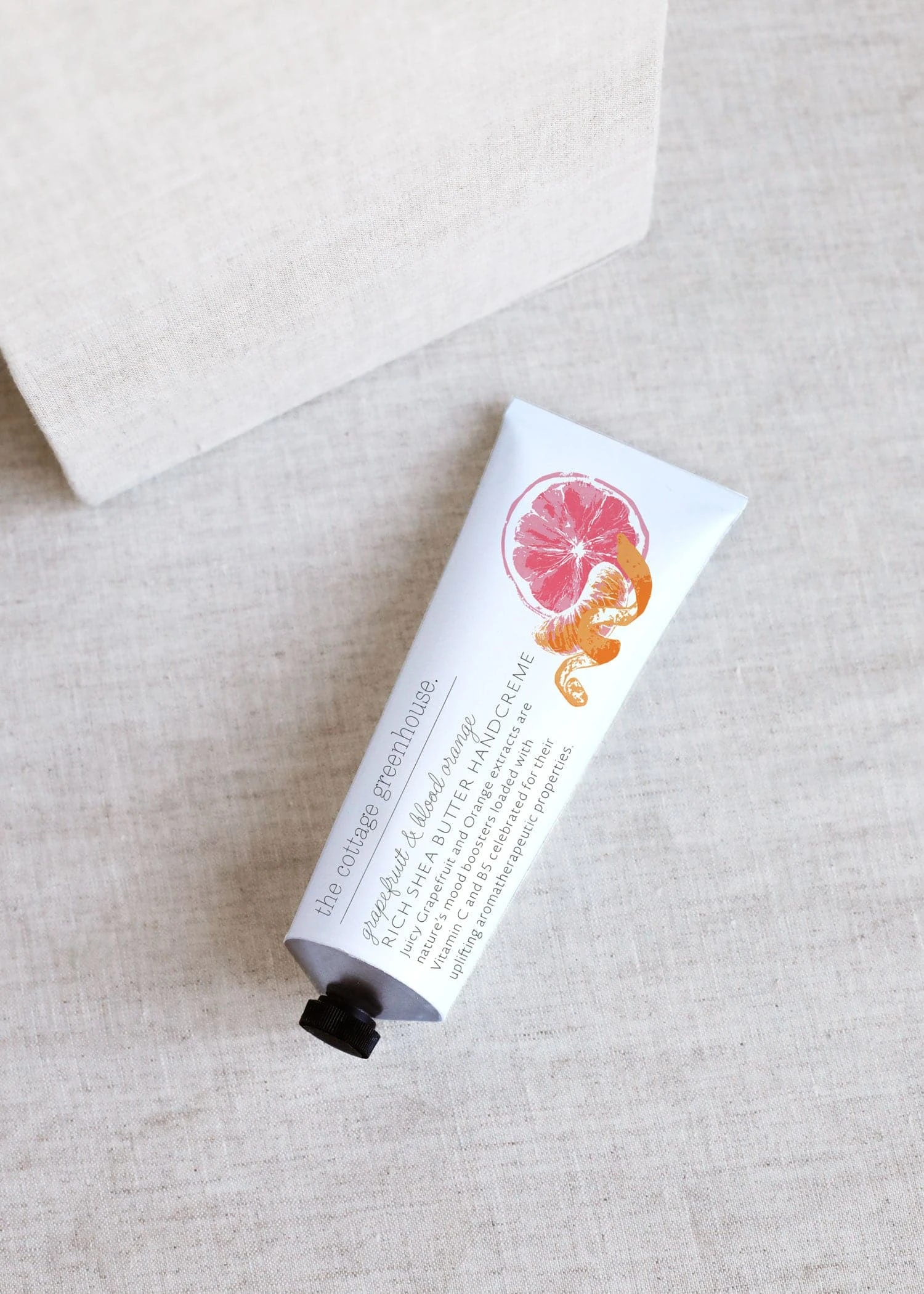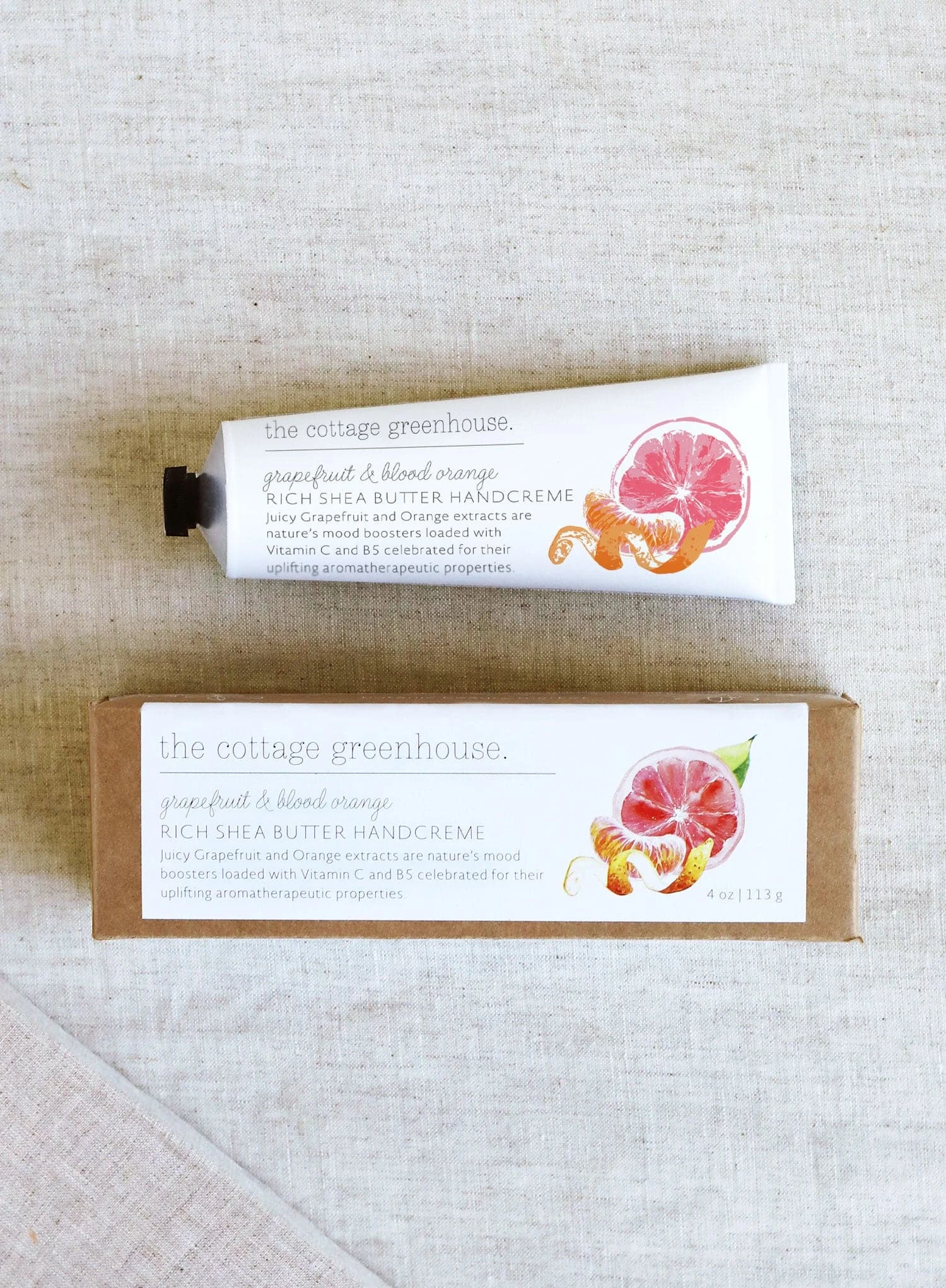 Thick, rich, and positively addicting. Your skin will thank you! Dynamic duo Avocado Oil & Shea Butter provide the base to our luxurious handcreme. Add to this natural emollients Jojoba & Grapefruit Extracts, and you have our irresistible botanic balm that absorbs quickly, soothing even the most demanding dry skin. You are left refreshed and marvelously moisturized. - Fragrance NotesGrapefruit & Blood Orange