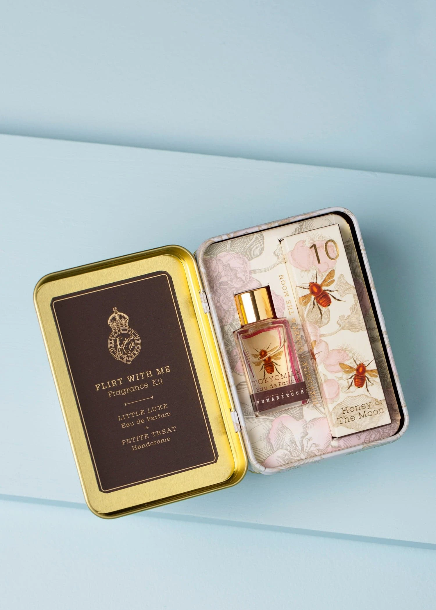 Adorned in buzzing honeybees, this tin box opens to reveal an artful interior and an enchanting duo of treasures: the Little Lux Eau de Parfum and Petite Treat handcreme. - Fragrance NotesSubtly sweet: Honey, Sugared Violet, Jasmine, and Sandalwood
