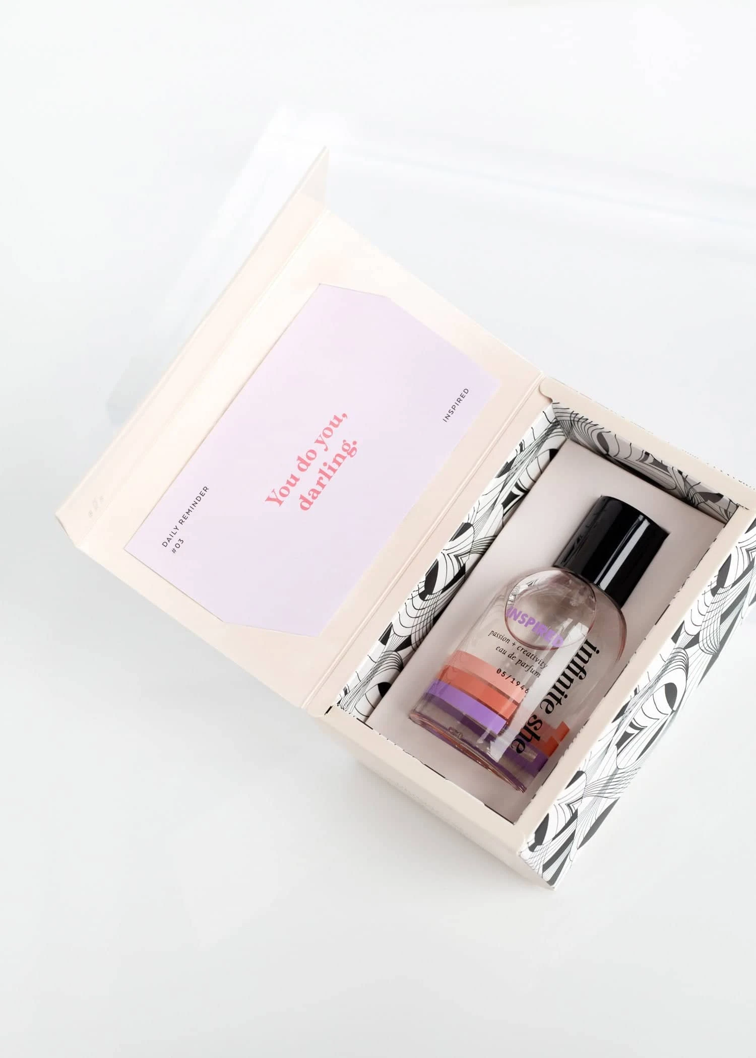 Each box celebrates stories of dauntless women who’ve left their mark on this world through boundary-breaking achievements, highlighted by throwback graphics and bold, contemporary design for a fresh sophistication. Uplifting bursts of vibrant accent colors & dynamic patterns are discovered upon unboxing, completed with colorful metallic detailing & magnetic closure for a modern, sleek feel in-hand. Includes an upbeat inspiration card for your mirror or wallet—a reminder of the infinite beauty that lies within. - Fragrance NotesPassion + Creativity: Violet Leaf + Jasmine