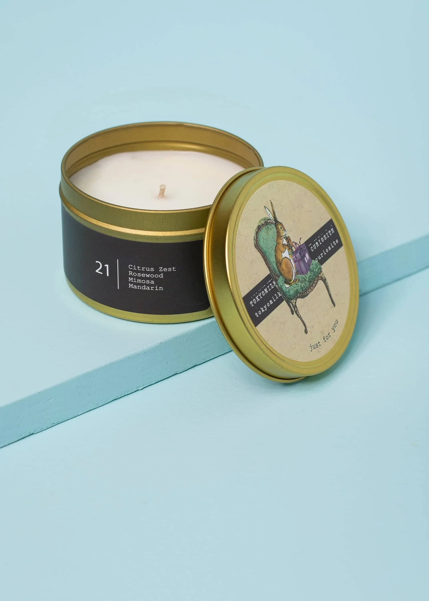 Embellished with iconic motifs, wild creatures, and delightful messages, this metallic gold-tone tin casts an even more illuminating glow.