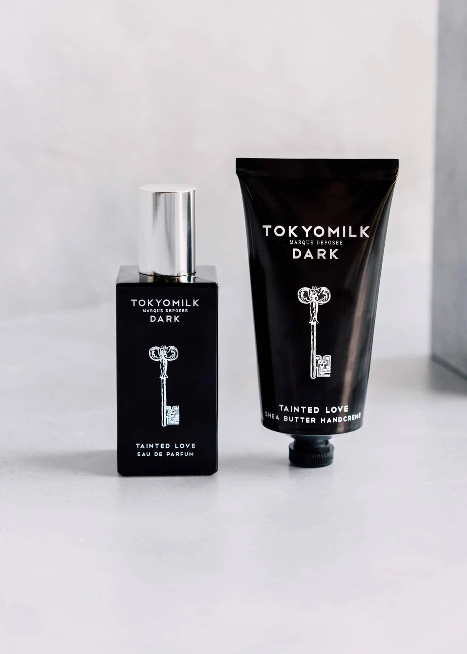 A provocative collection unlike any other. TokyoMilk Dark’s signature Tainted Love perfume charms with fragrance notes of Dark Vanilla Bean, Orchid, White Tea, and Sandalwood. Layer on our lush and hydrating handcreme for an extended fragrance experience.