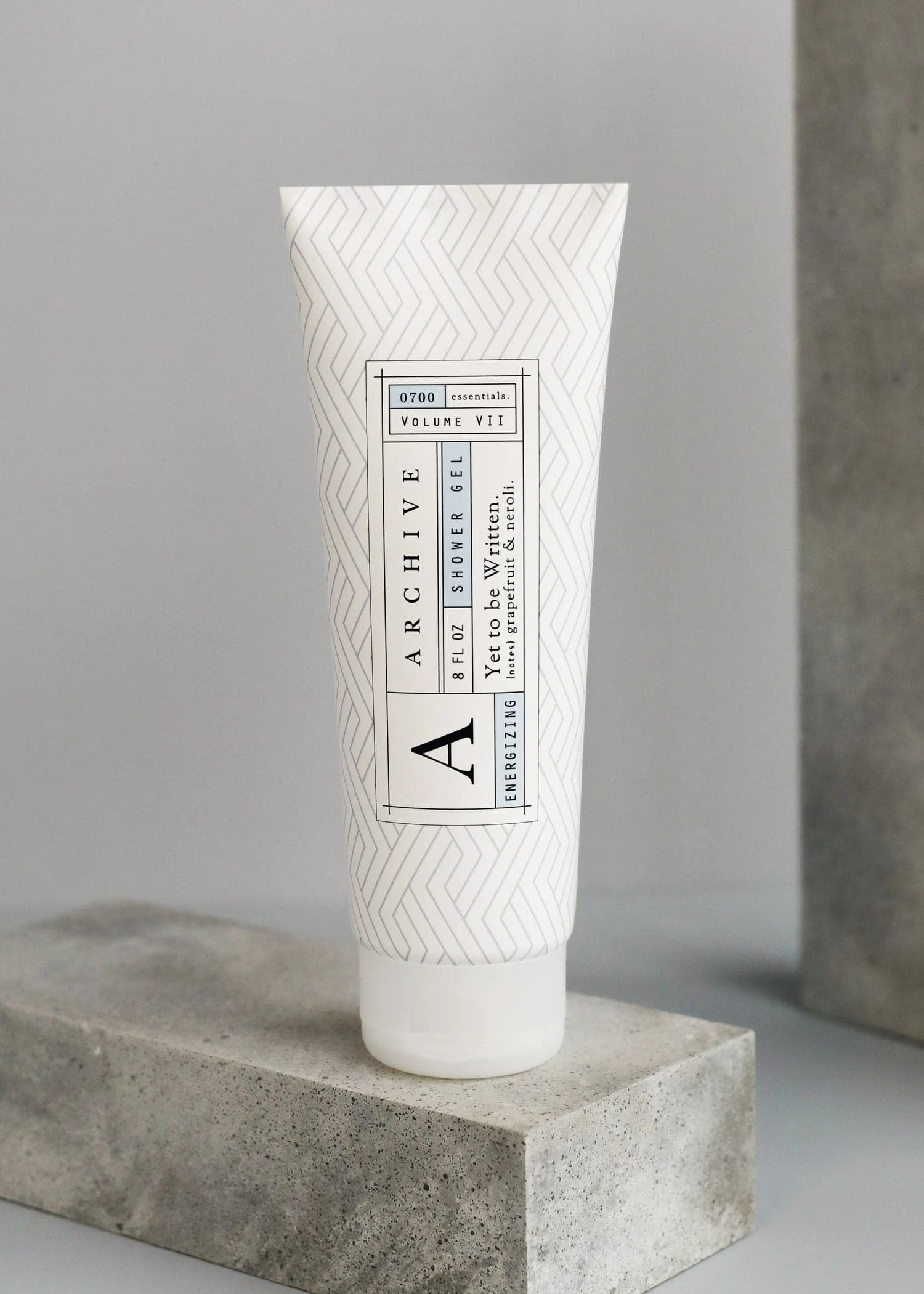 A sleek geometric pattern perfectly complements Archive’s squeaky-clean signature label. Thoughtfully designed, shower-friendly inverted squeeze bottle.